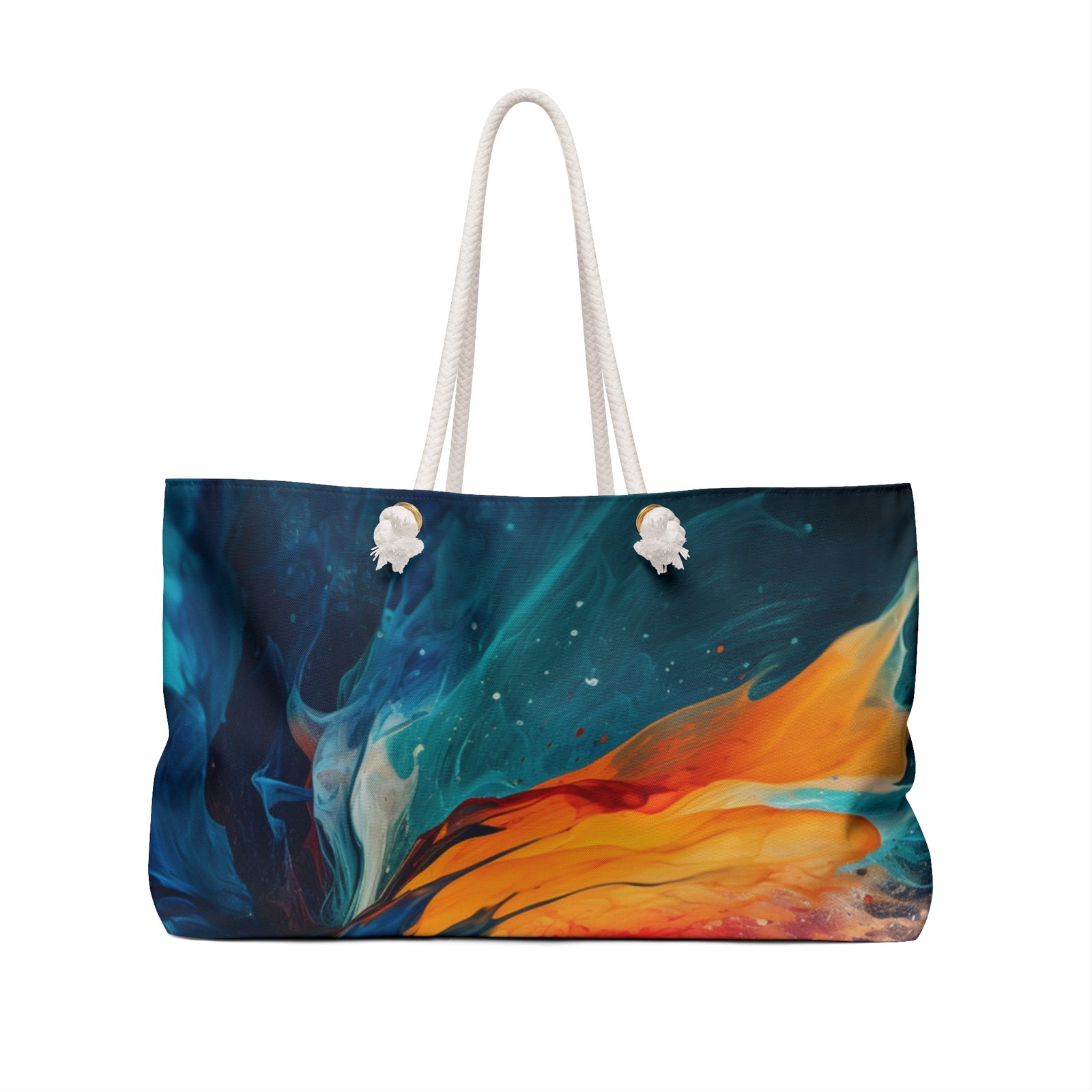 Our oversized Weekender Tote is perfect for your weekend at the beach or in town. The wide-mouthed, durable bag holds a generous amount of personal items and is easily held by its thick rope handles.