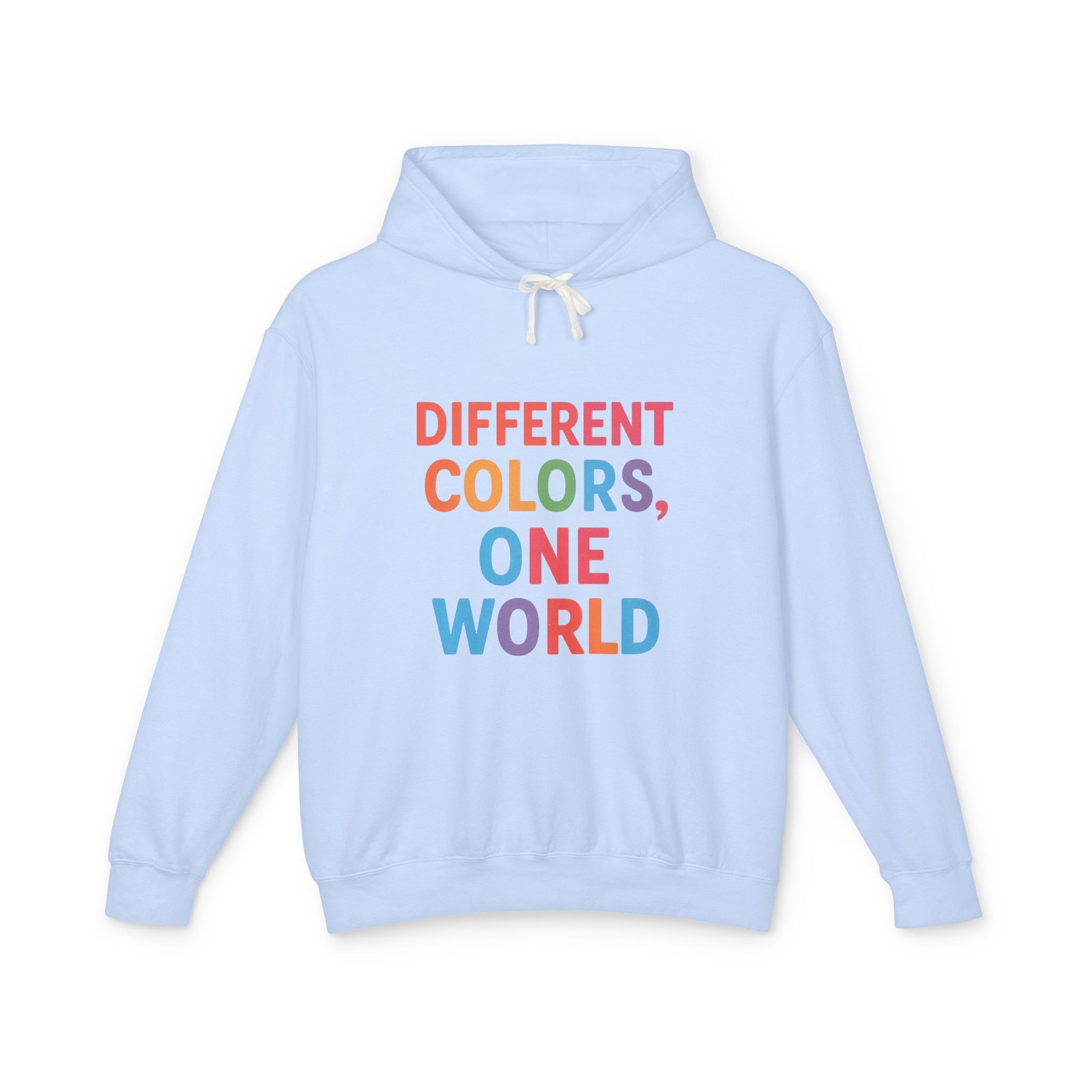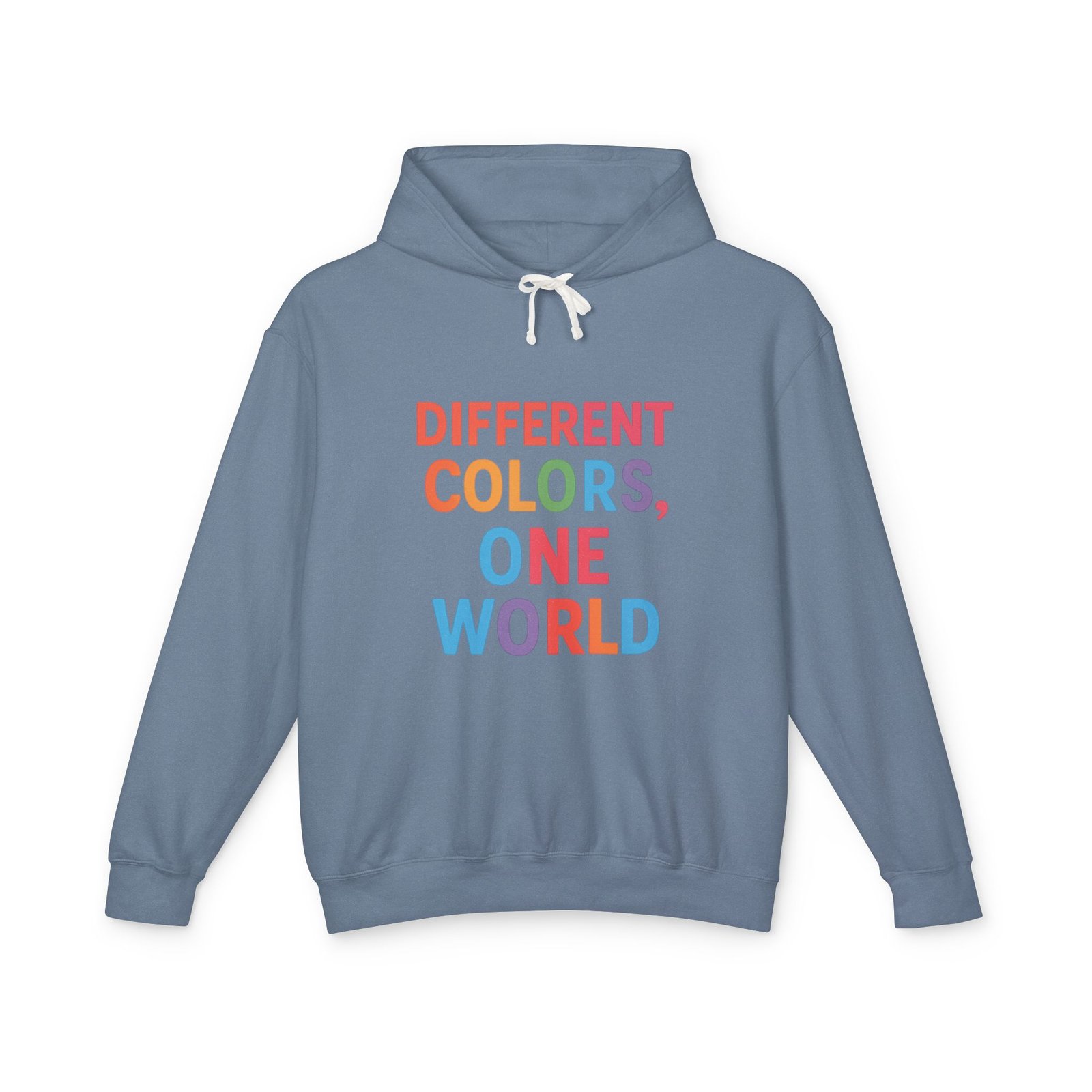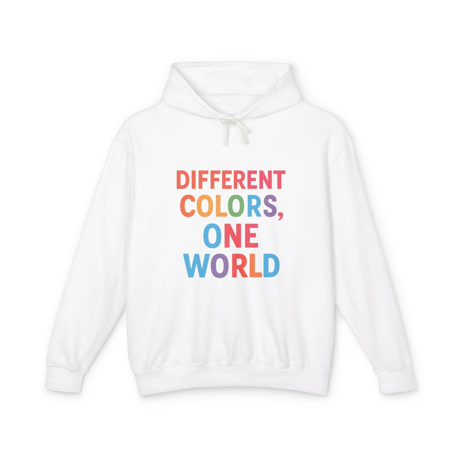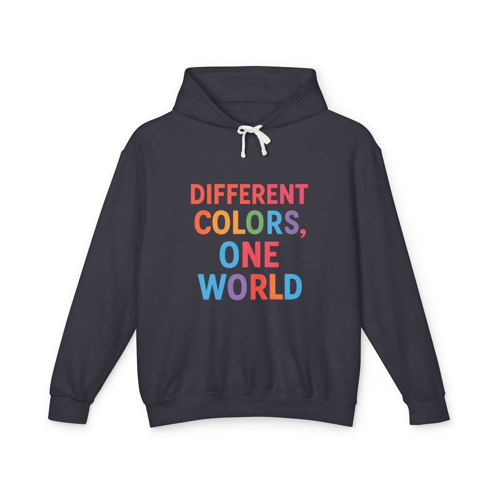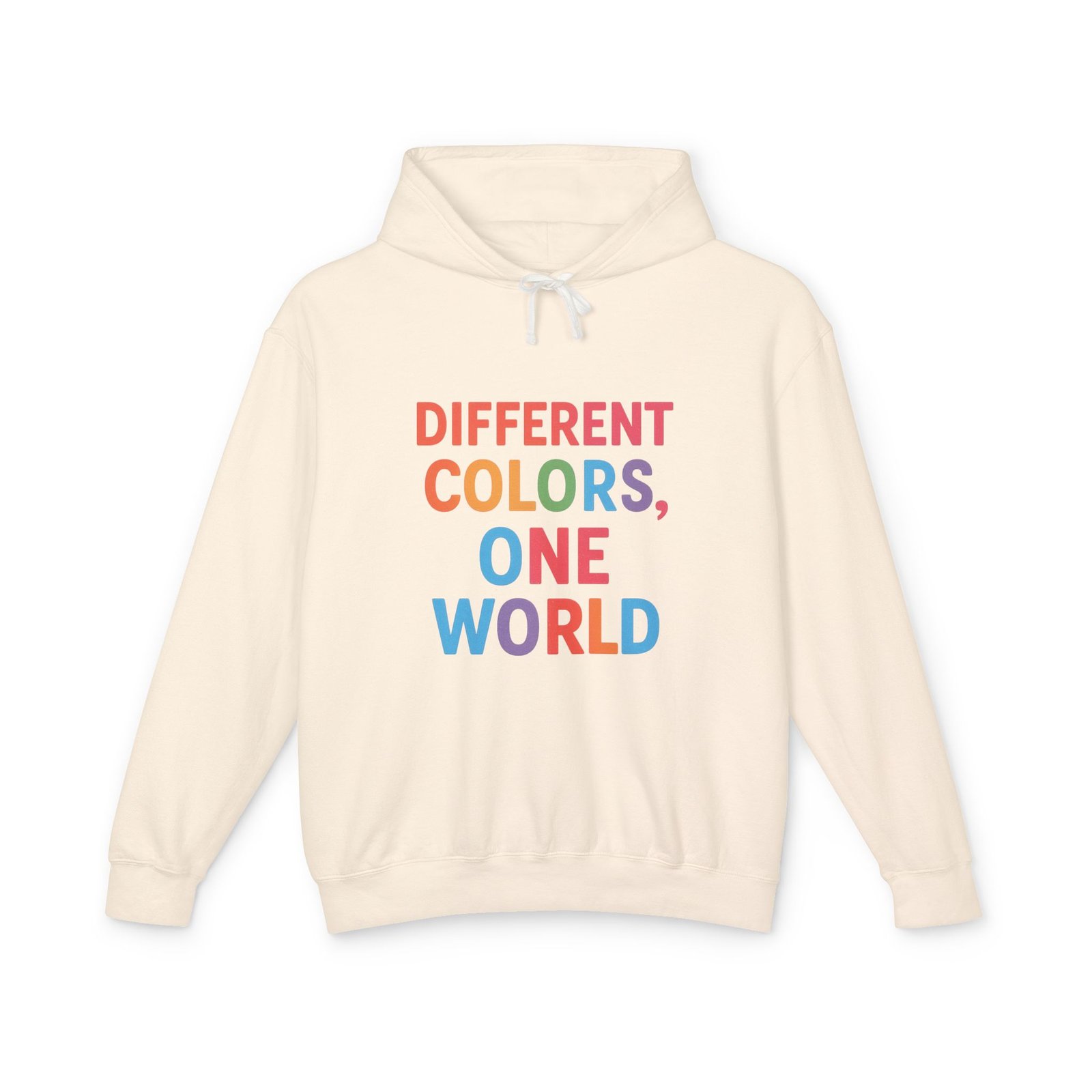 Colorful World Message Hoodie – Unisex Lightweight Hooded Sweatshirt, Casual Wear, Inspirational Gift, Earth Day Apparel, Diversity Fashion