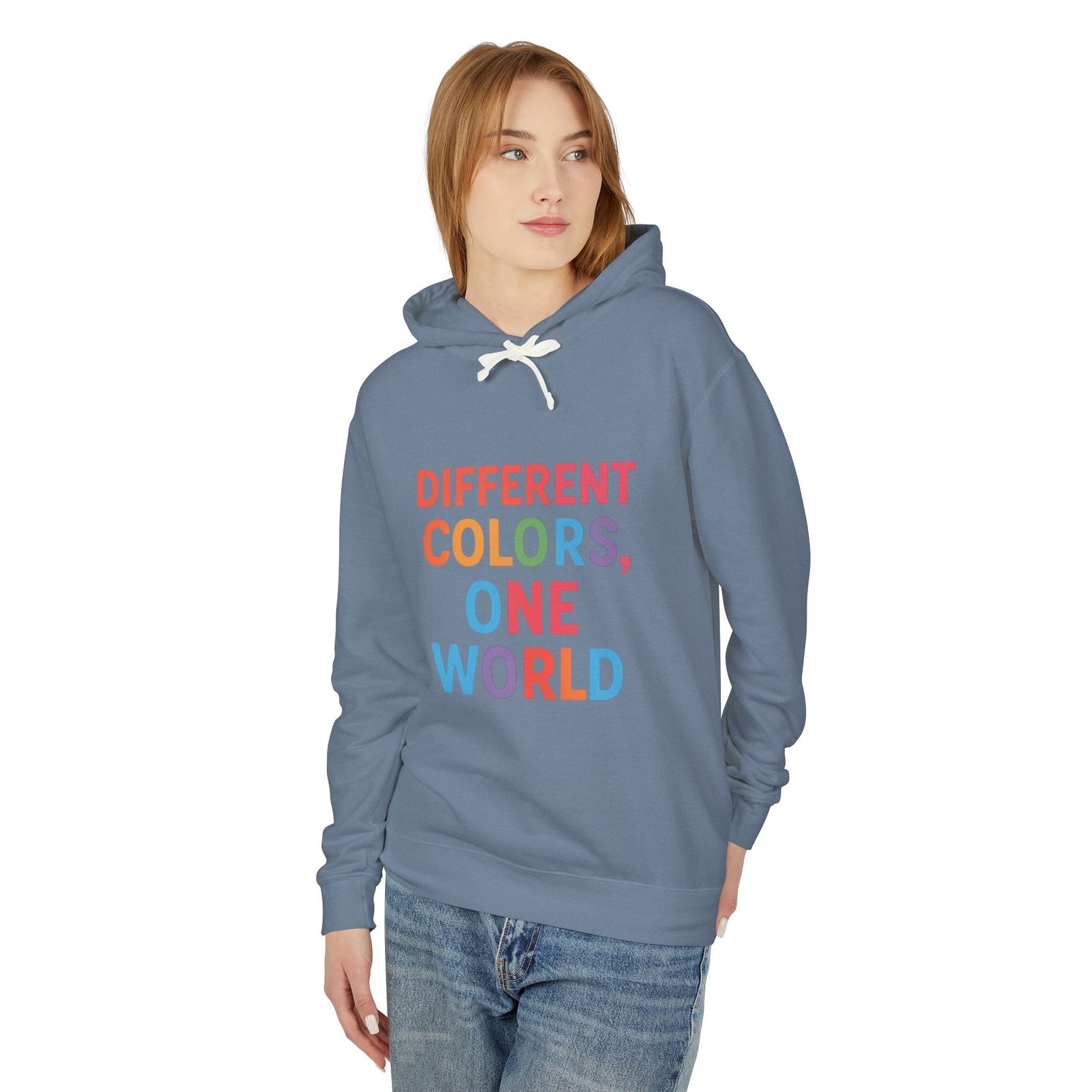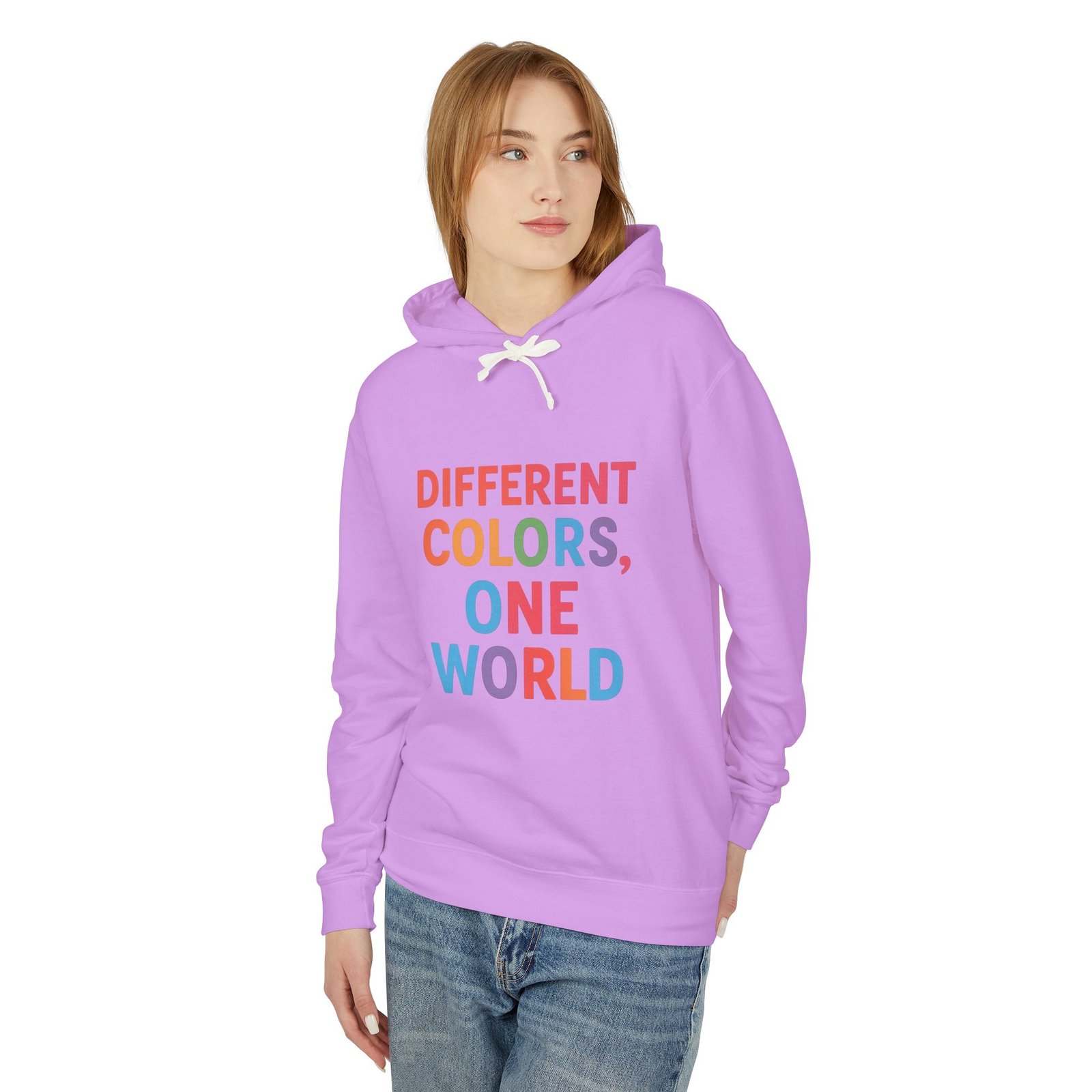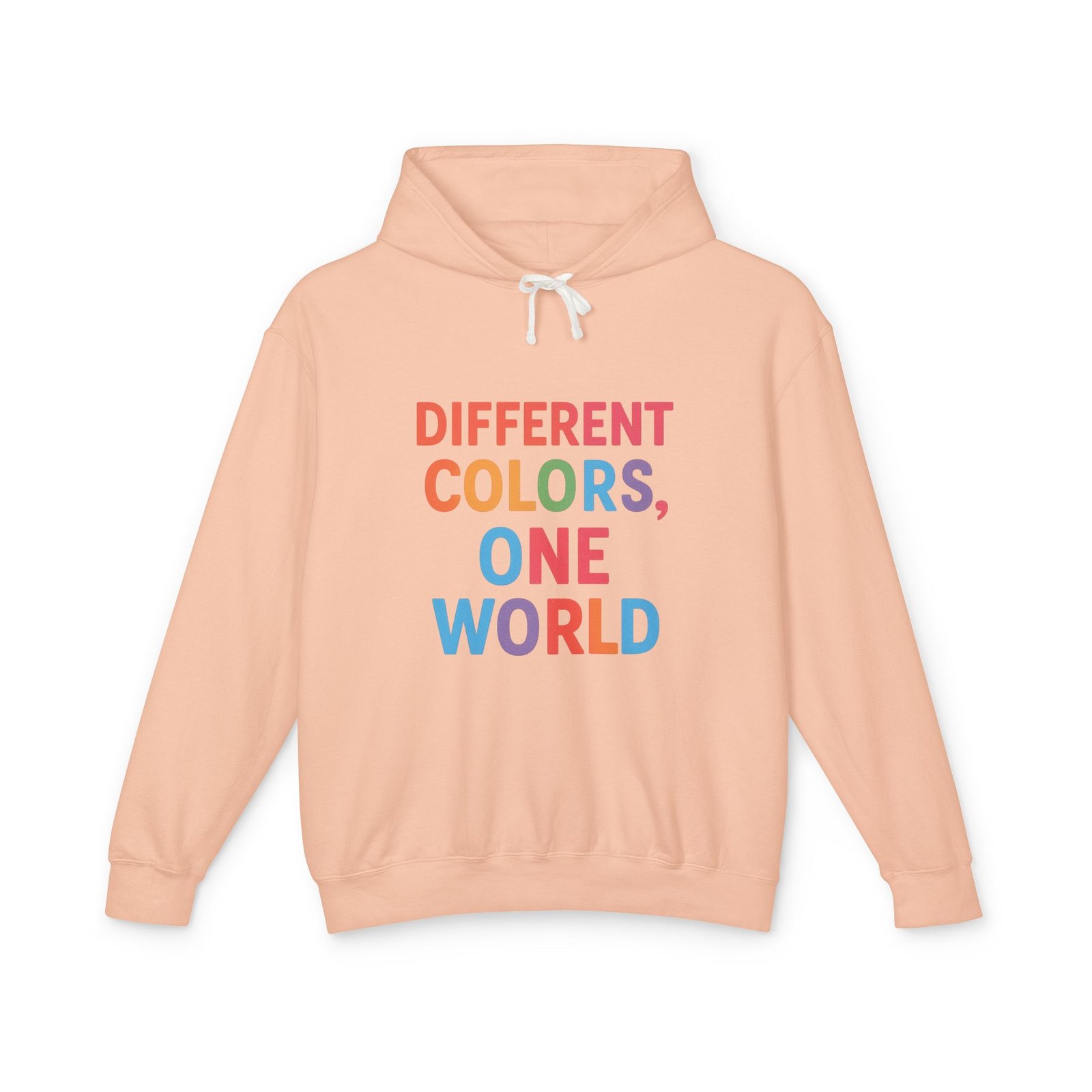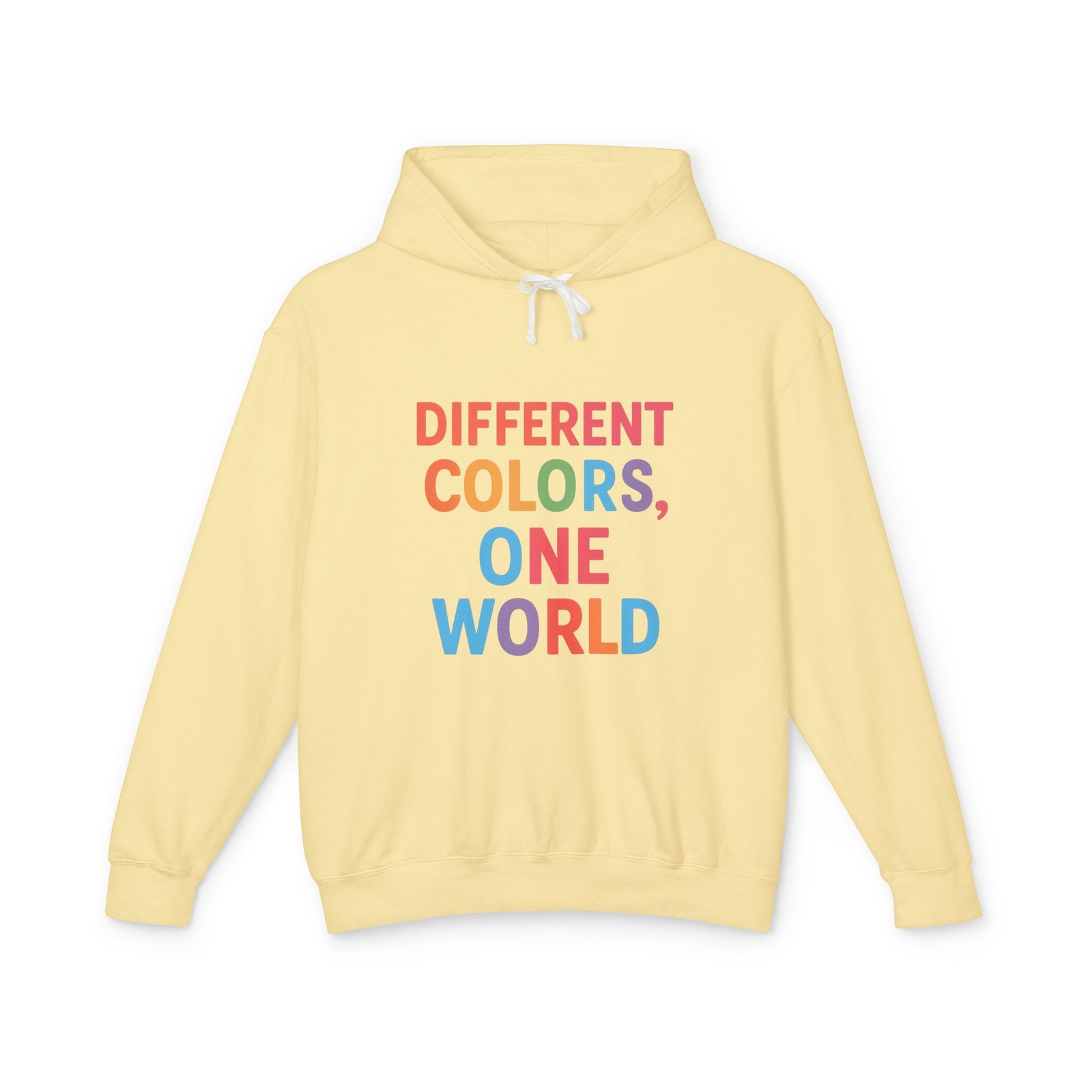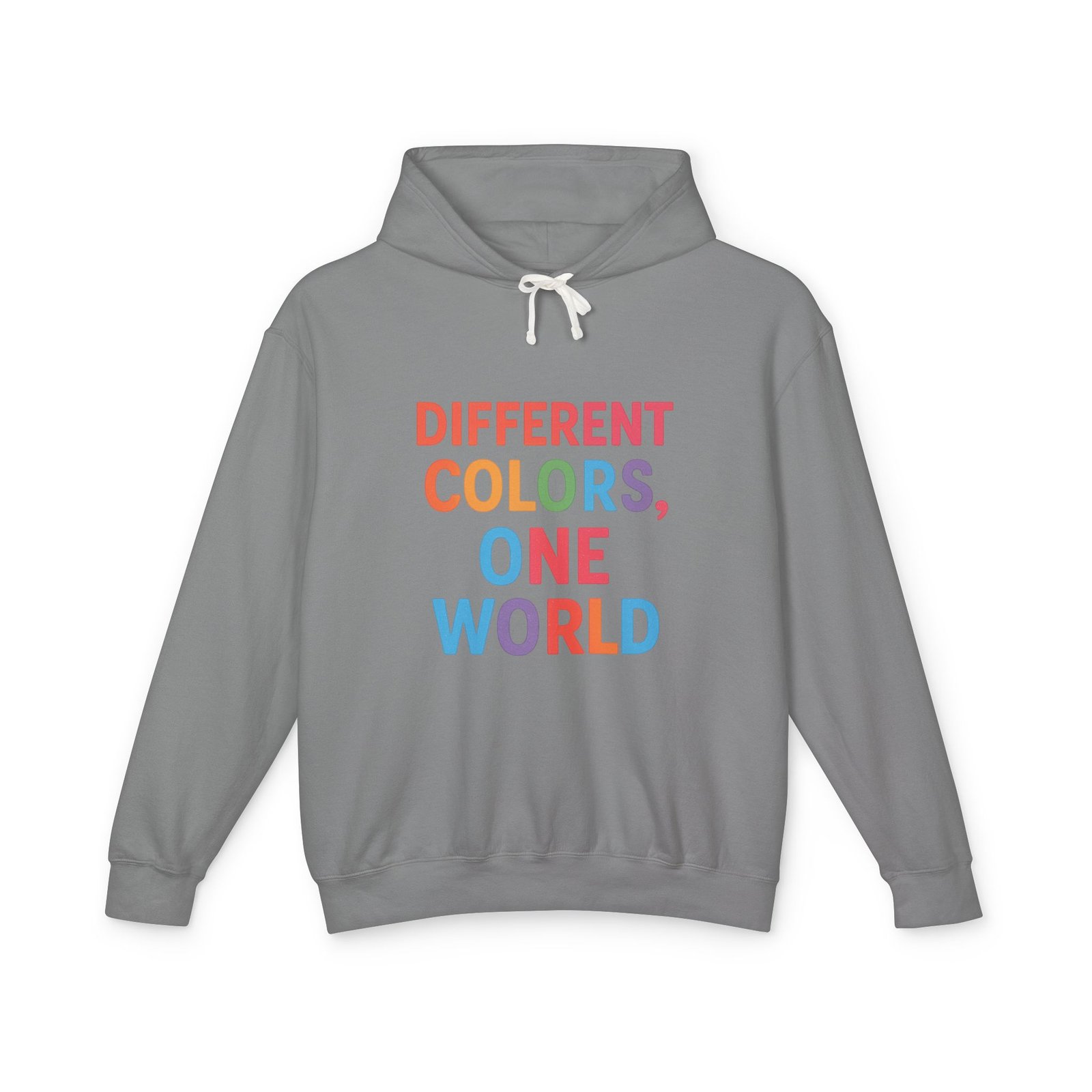 Colorful World Message Hoodie – Unisex Lightweight Hooded Sweatshirt, Casual Wear, Inspirational Gift, Earth Day Apparel, Diversity Fashion