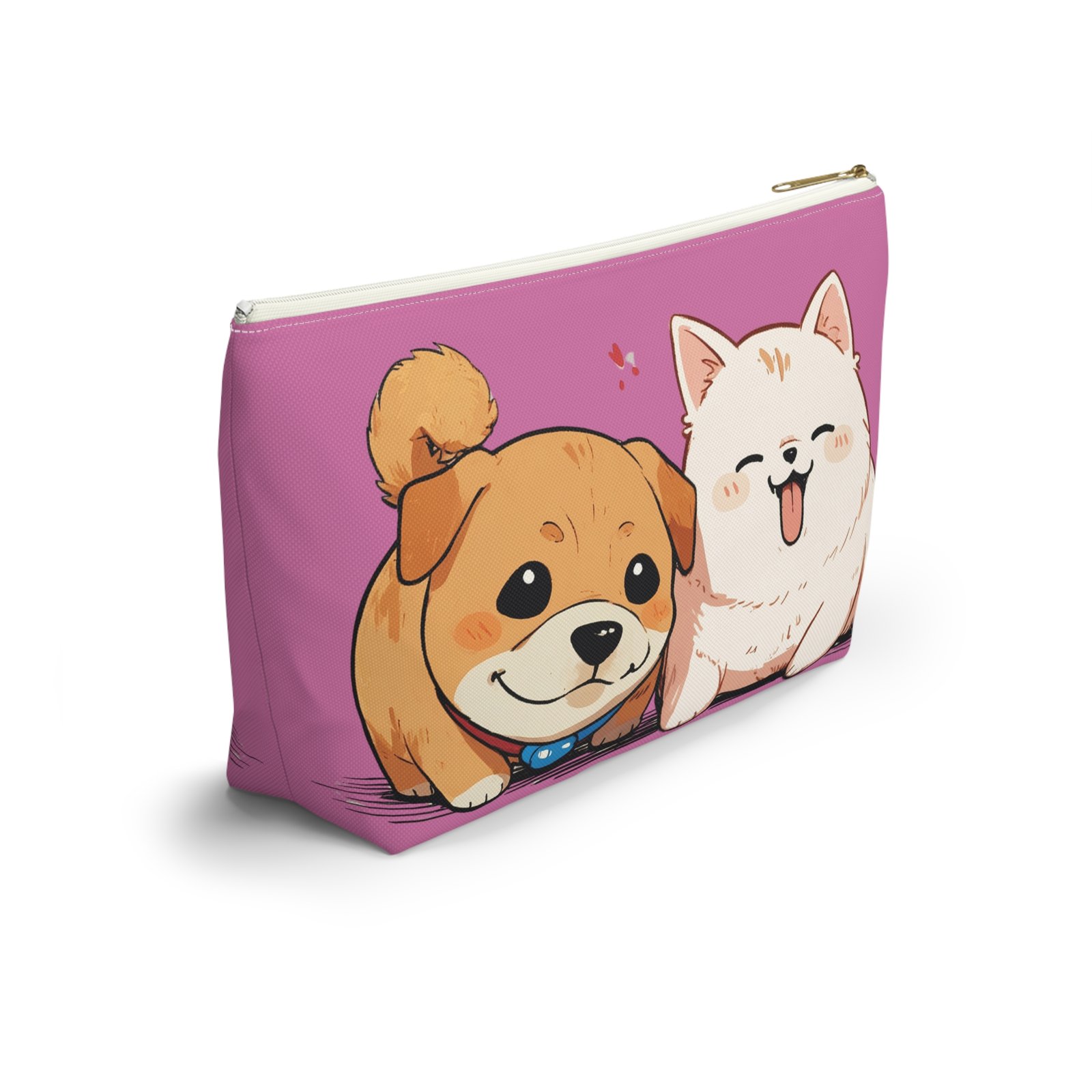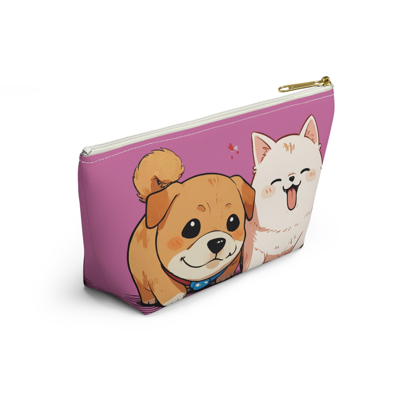 Introducing the perfect accessory pouch, designed for pet lovers and artists alike! This stylish pouch features adorable illustrations of playful puppies, bringing joy and warmth with every glance. Made from high-quality, spun polyester, it maintains its shape beautifully and resists wrinkles, making it ideal for everyday use. Use it to store makeup, art supplies, or your favorite small items—its vibrant colors will brighten your day wherever you go. Perfect for birthdays, pet-themed parties, or simply treating yourself!