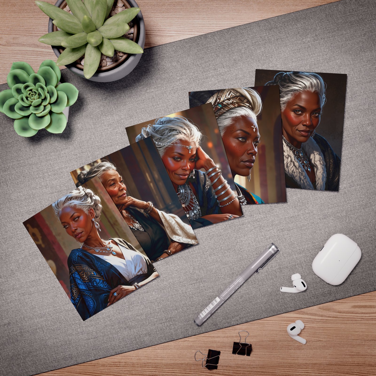 Discover a stunning collection of greeting cards featuring older elegant black women, perfect for sharing heartfelt messages with loved ones. These high-quality cards showcase vibrant colors and intricate designs that bring a touch of elegance to any occasion. Whether sending birthday wishes, holiday greetings, or simply a note of appreciation, these versatile cards are ideal for everyone who values personal connections. Each card comes complete with a matching envelope, making it easy to present your sentiments beautifully. Great for celebrations like anniversaries, Mother’s Day, or even just to brighten someone’s day, these greeting cards add a special touch to every message. They are perfect for artists, card collectors, or anyone who enjoys expressing themselves through creative correspondence.
