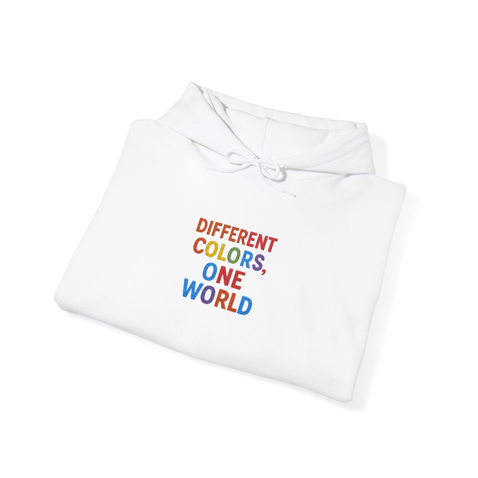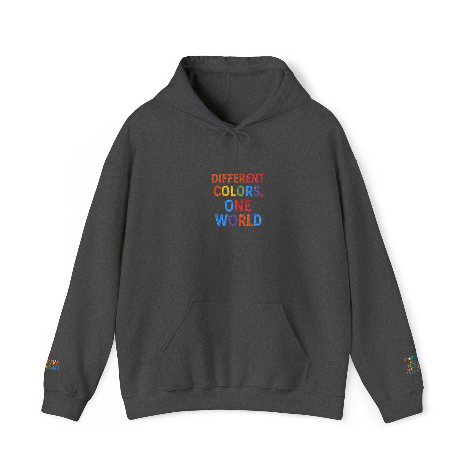 Stay cozy and stylish with this Unisex Heavy Blend™ Hooded Sweatshirt. Different colors representing one world with embroidered sayings on each arm. This hoodie is perfect for adults looking for a trendy and comfortable piece to add to their wardrobe. Ideal for casual wear, gifting, holidays, and everyday occasions.
