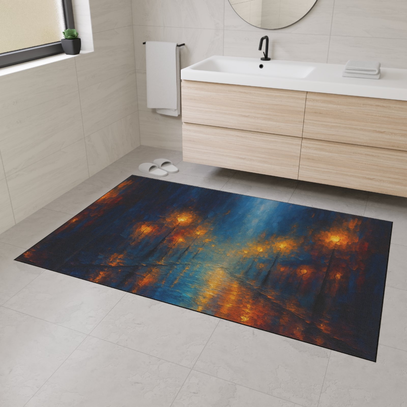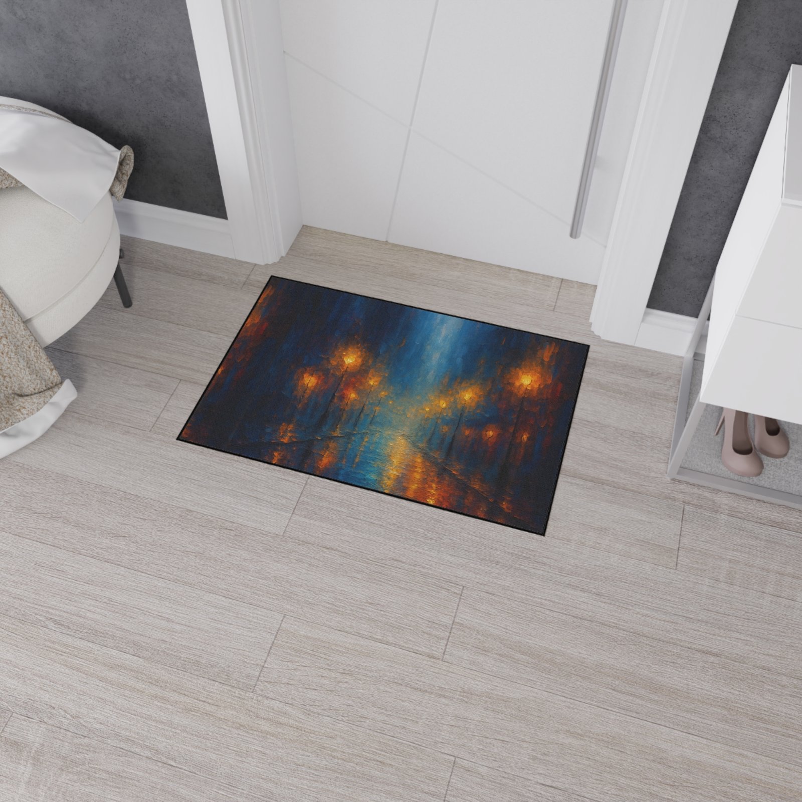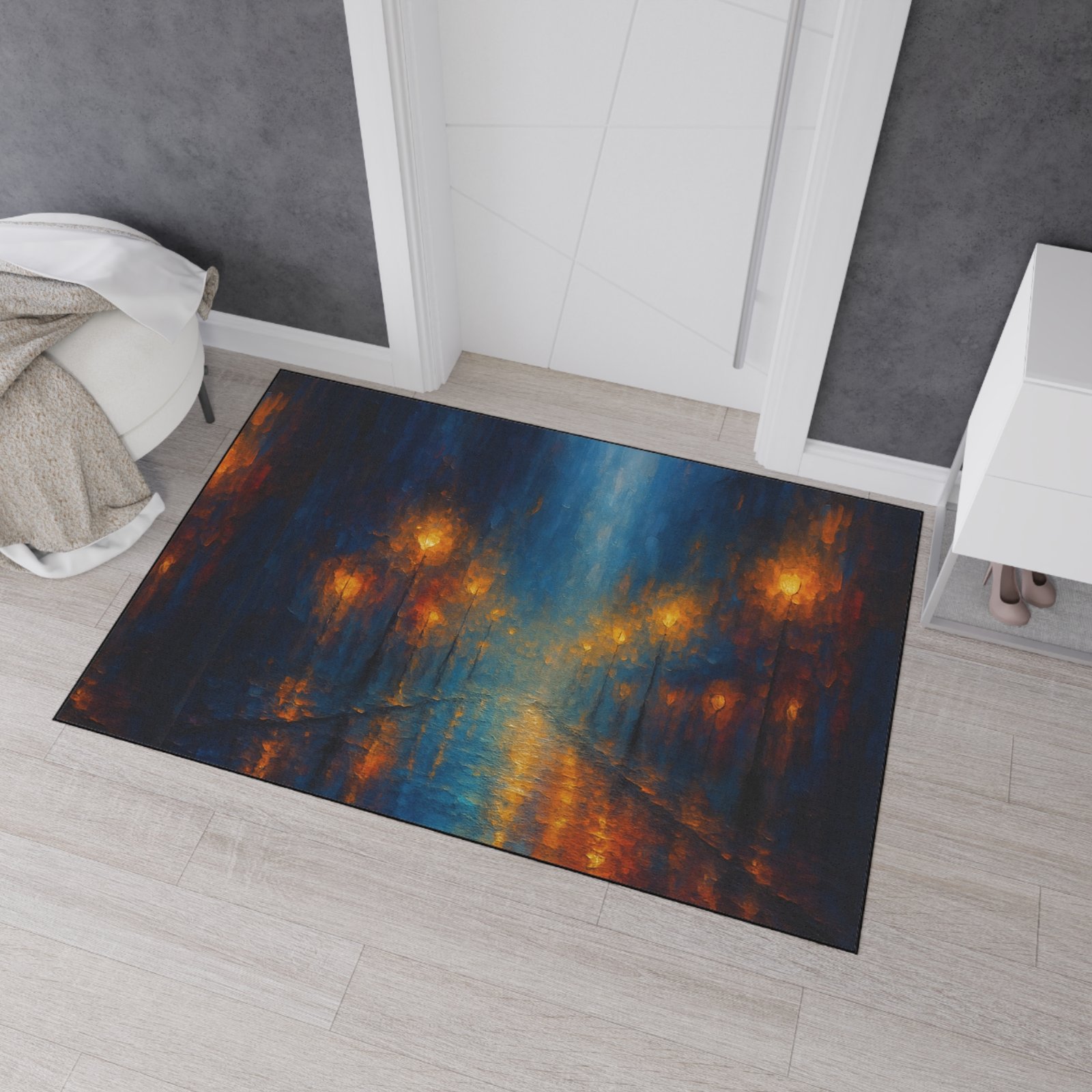Add a touch of urban sophistication to your home with this Rainy City Nightscape Floor Mat featuring impressionist streetlights and reflections. Perfect for city dwellers or art lovers, this floor mat will bring a unique vibe to your living space. Ideal for rainy days or cozy nights in.