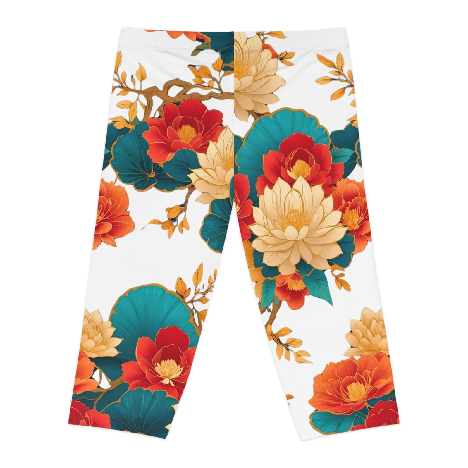 Discover our vibrant Women’s Capri Leggings, designed for comfort and style. The captivating floral print radiates positivity, making them perfect for adding a splash of color to your everyday outfit. Whether you’re lounging at home, running errands, or hitting the gym, these leggings fit seamlessly into your lifestyle. They cater to fashion-forward women who appreciate both practicality and flair. Ideal for casual outings, yoga sessions, or even as a standout piece during festivals and celebrations, these leggings elevate your wardrobe for any occasion, including spring outings and casual gatherings.