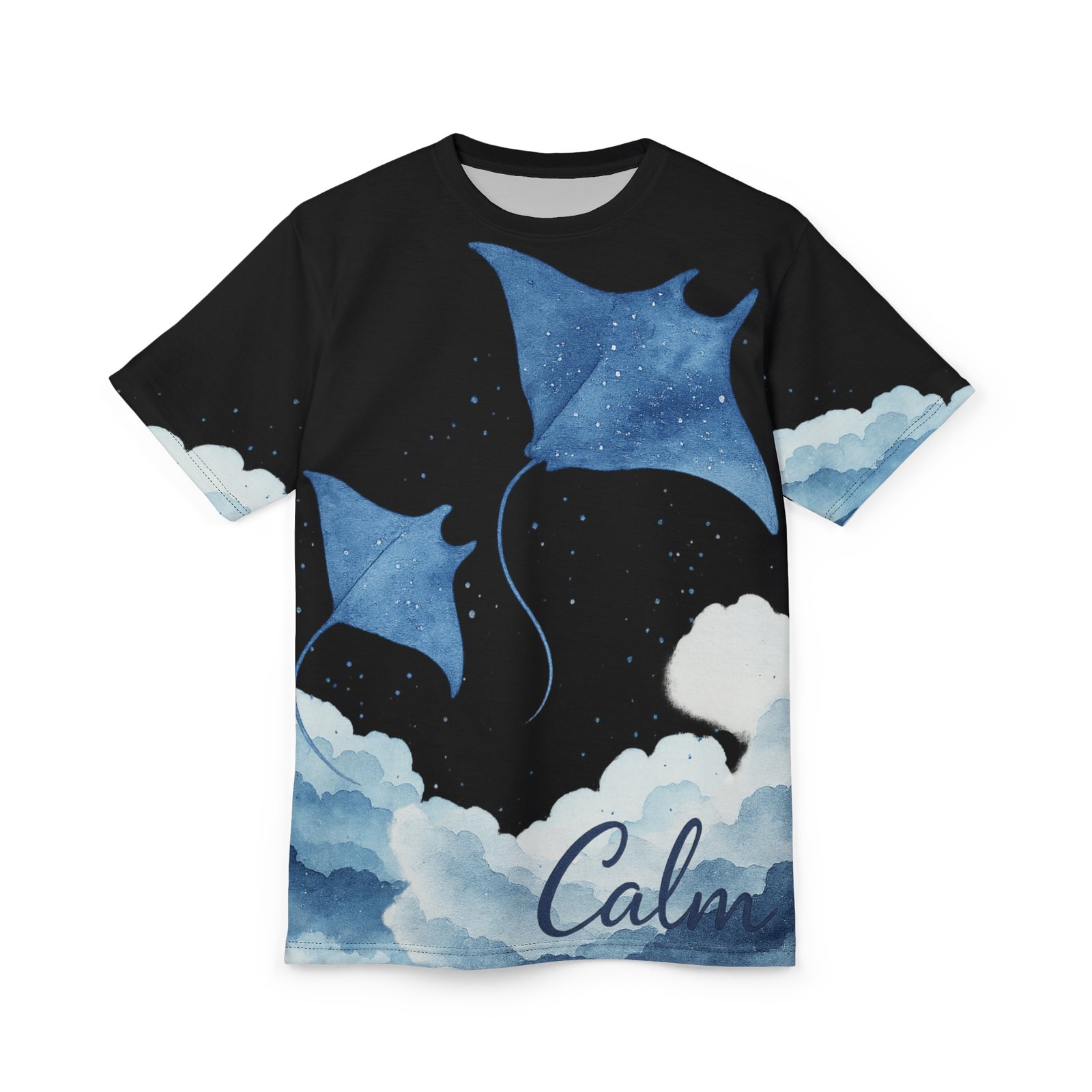 Calm Manta Ray Unisex Tee in Black – Dreamy Ocean Vibes, Perfect for Relaxation, Water, Gift for Aquatic Enthusiasts. This tee gives off a soothing and tranquil vibe, perfect for those who love the ocean and aquatic life. Ideal for wearing during beach days, vacations, or as a thoughtful gift for ocean lovers.