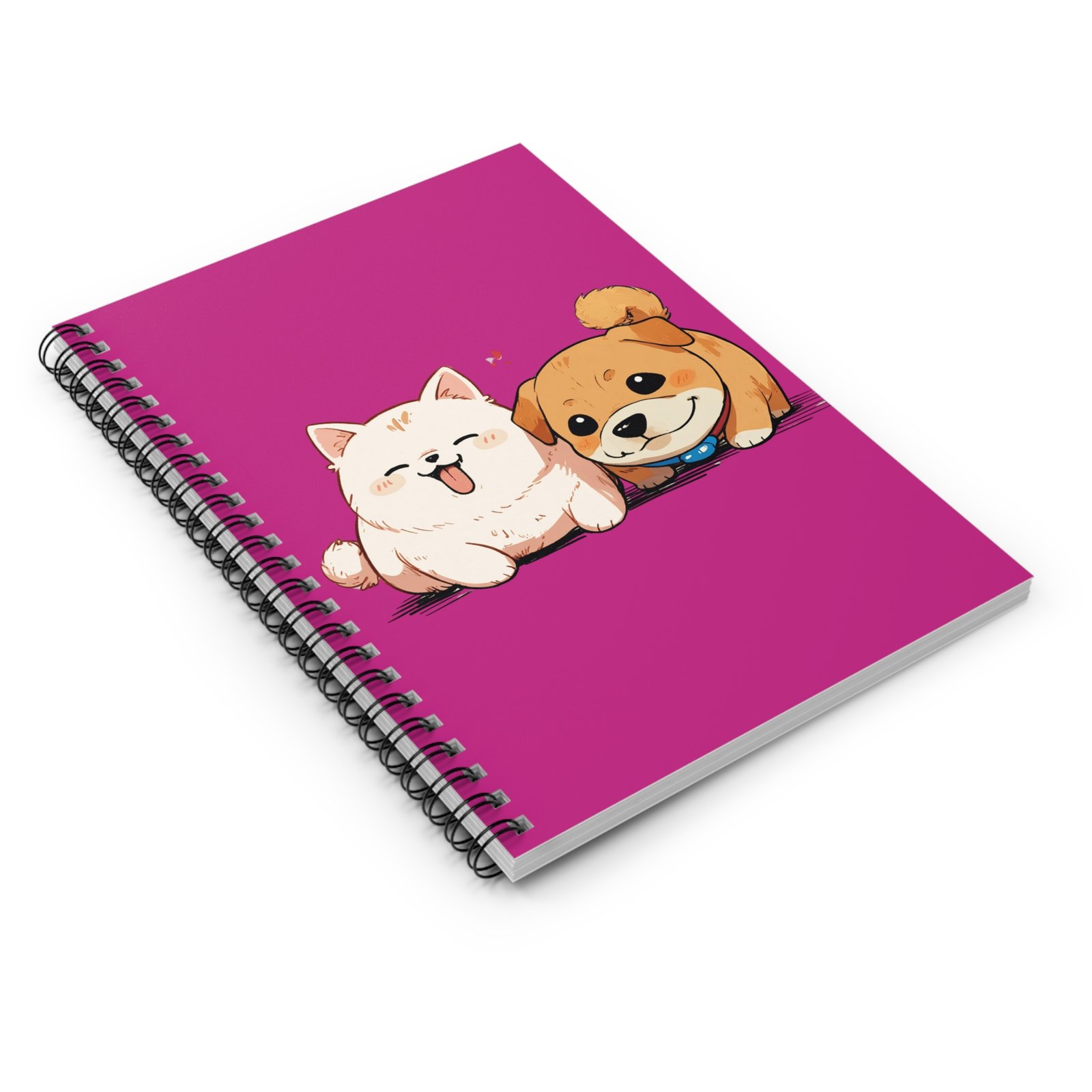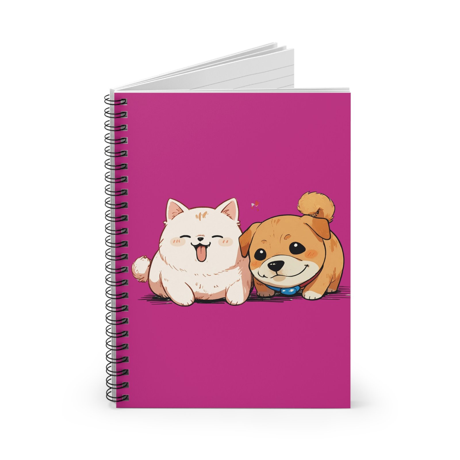 Introducing our charming Spiral Notebook, designed to bring a splash of joy to your everyday tasks! Featuring an adorable illustration of two playful pups, this notebook is perfect for all dog lovers. The vibrant cover sets a cheerful tone, making jotting down notes, doodling, or planning a delight. Its compact size (6″ x 8″) makes it convenient for on-the-go use, whether you’re at school, work, or a cozy café. Ideal for students, pet lovers, or anyone who appreciates a dash of cuteness in their stationery! Perfect for back-to-school season, birthdays, or just to treat yourself to something special. Let this delightful notebook inspire your creativity and keep your thoughts organized!
