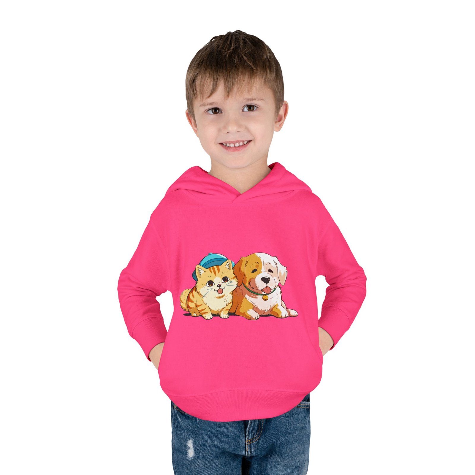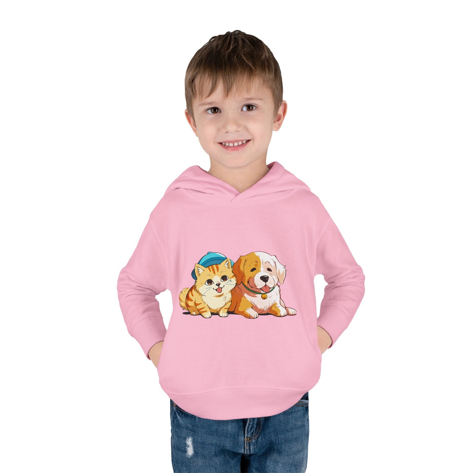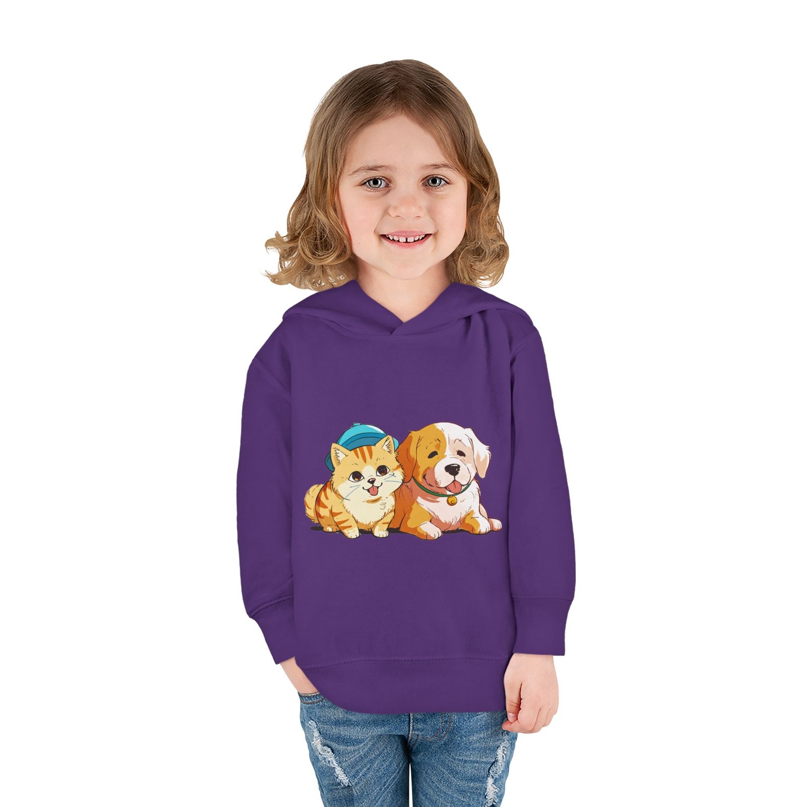 Designed for seamless comfort, this Rabbit Skins personalized toddler hoodie features a jersey-lined, double-needle hemmed hood for enhanced durability. Plus, it comes with cover-stitched shoulders and armholes, as well as cover-stitched waistband and cuffs. Along with the side seam pockets, these toddler hoodies are designed for long-lasting coziness.