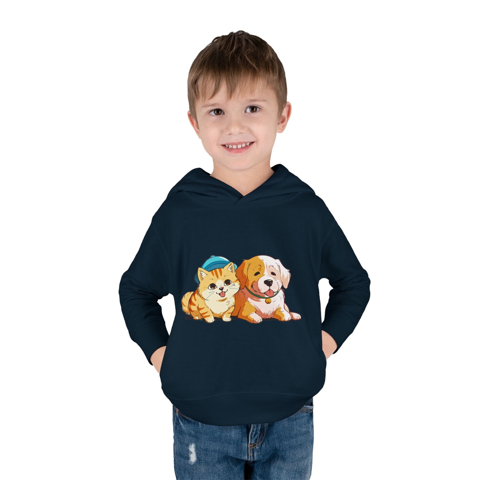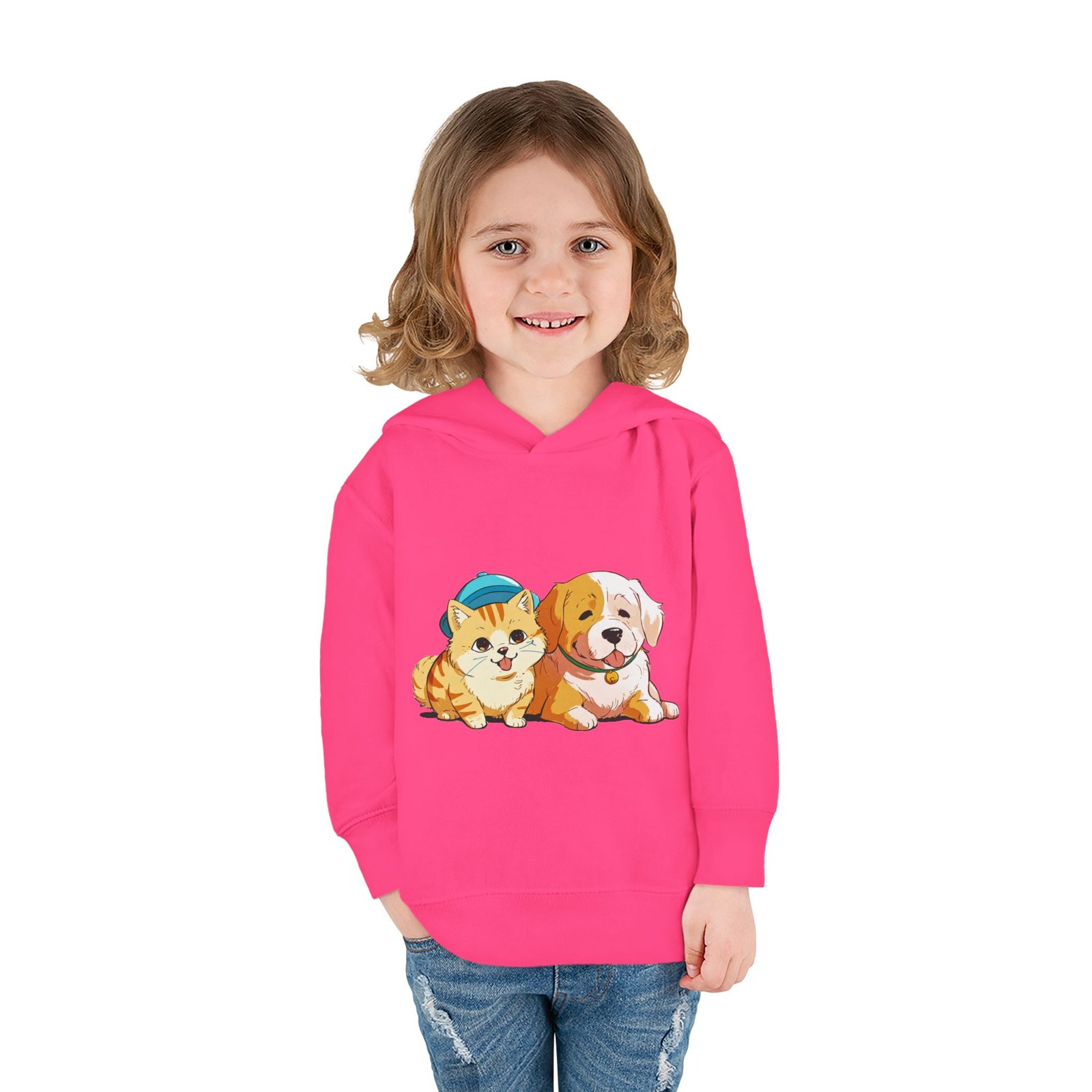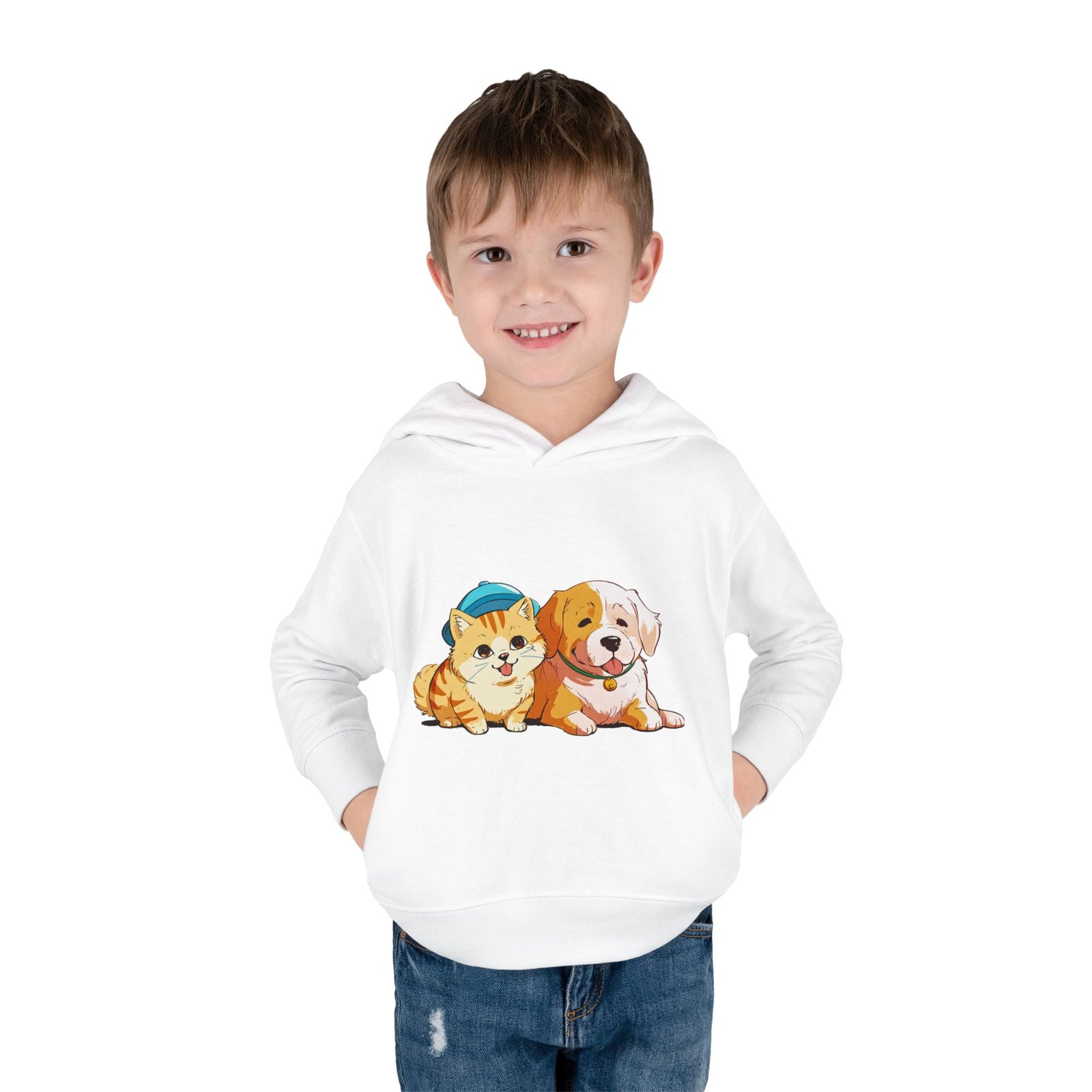 Designed for seamless comfort, this Rabbit Skins personalized toddler hoodie features a jersey-lined, double-needle hemmed hood for enhanced durability. Plus, it comes with cover-stitched shoulders and armholes, as well as cover-stitched waistband and cuffs. Along with the side seam pockets, these toddler hoodies are designed for long-lasting coziness.