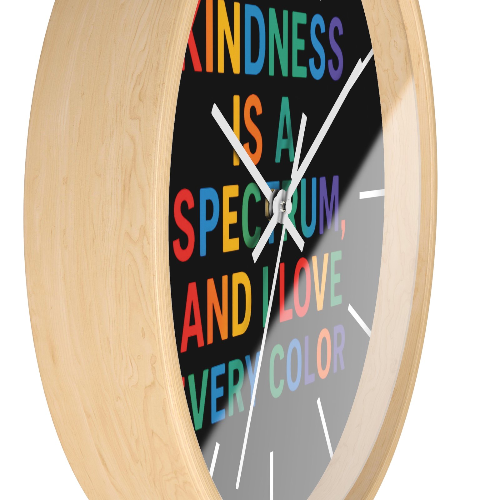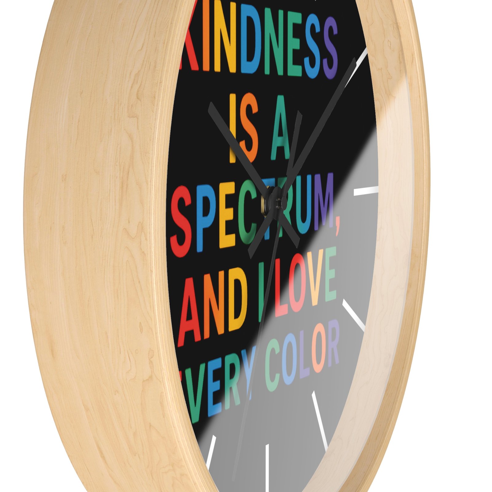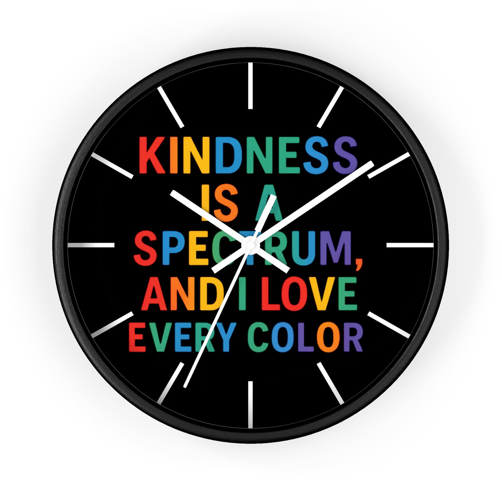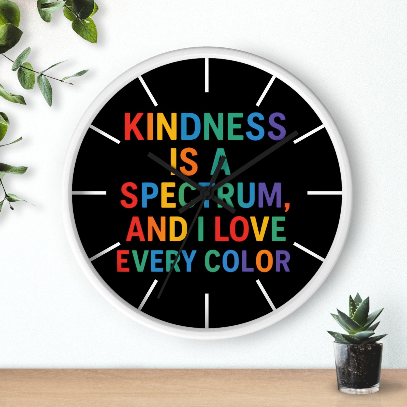 Brighten up your space with this vibrant wall clock, a perfect blend of style and functionality. Its eye-catching design, featuring the uplifting phrase “Kindness is a spectrum, and I love every color,” creates a cheerful atmosphere in any room. Ideal for those who value positivity and creativity, this clock is a wonderful addition to home offices, children’s rooms, or art studios. Great for buyers looking to express their individuality and spread joy. Perfect for holidays, birthdays, or just as a thoughtful gift to motivate friends and family to embrace kindness every day.